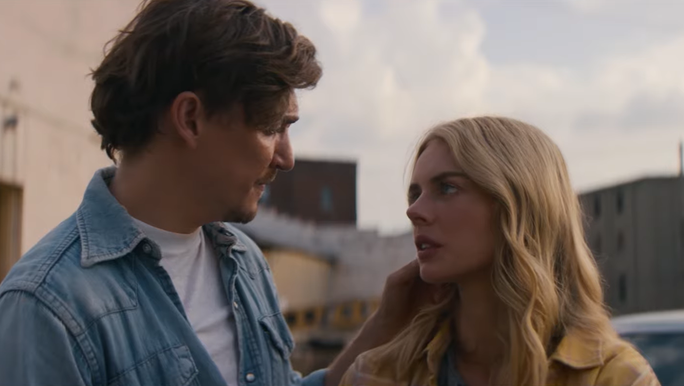 Christopher Bear’s score gives the film a soulful, distinctly Southern personality. Moreover, the entire music department deserves recognition because the country music needle drops perfectly underscore the couple’s escapades. In fact, the song choices are so precise that the lyrics often feel like they’re commenting directly on what’s unfolding on screen. Some might criticize the soundtrack for being too on-the-nose, but I’ve always been a sucker for a good on-the-nose needle drop, and the ones in this film feel meticulously thought out. For instance, on the day they first meet, “The Nail” by Sarah Shook & The Disarmers plays on the jukebox as the lyric “I can’t decide which one of us will be the nail in this here coffin” accompanies the image of the duo sitting together at the bar, subtly foreshadowing the volatile nature of their relationship. They also discuss their mutual love for Steve Earle’s “Someday” when it comes on the radio in the car, which feels especially fitting, with the line “I’m going to get out of here someday” echoing Caroline’s longing to escape her small-town existence.