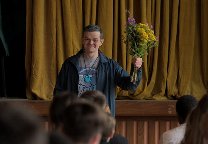 The film begins in 1983, following 12-year-old John Davidson (Scott Ellis Watson, in his acting debut), who dreams of becoming a football player. He suddenly begins experiencing involuntary tics and coprolalia, a condition that involves the uncontrollable utterance of obscene or inappropriate remarks. It quickly becomes clear that his family, classmates, and teachers do not understand what is happening to him, as he is repeatedly scolded and mistreated for something he cannot control. It is both harrowing and frustrating to watch the people around him make no effort to understand, instead resorting immediately to anger. Years later, at the age of 25, John (Robert Aramayo) finally receives a diagnosis of Tourette syndrome, for which there is no cure.